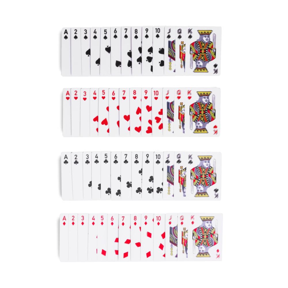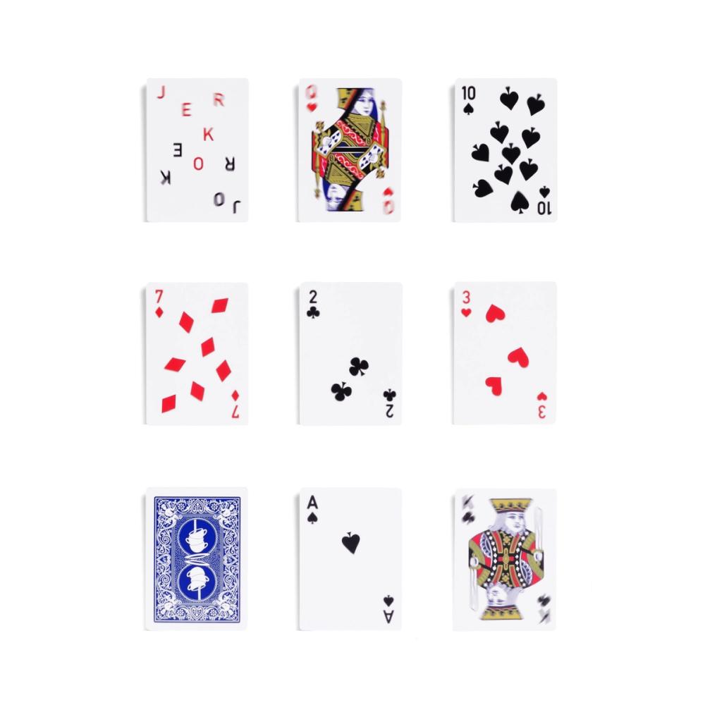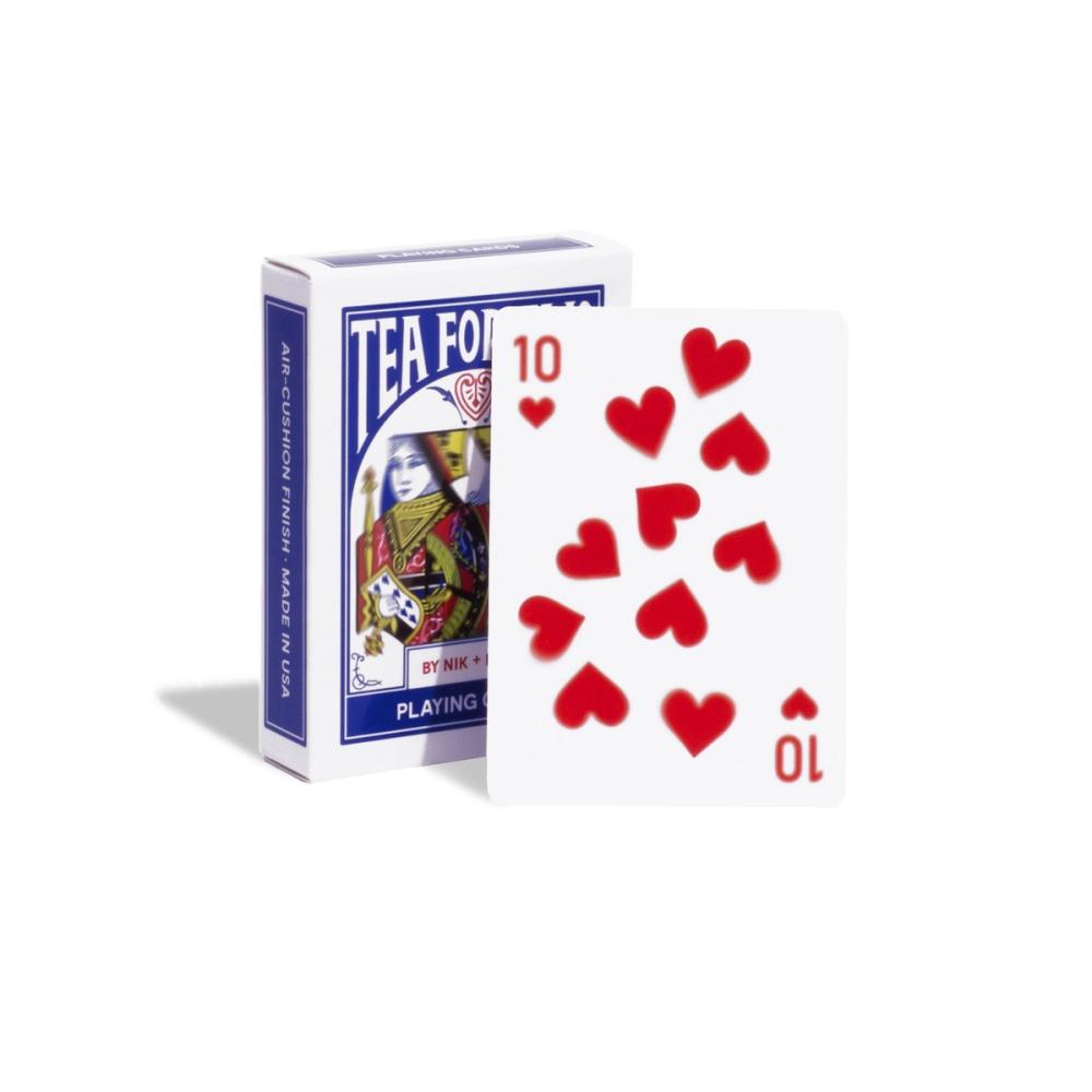 The Deck of Cards features skewed suits and faces, with a Tea for Two set back design.