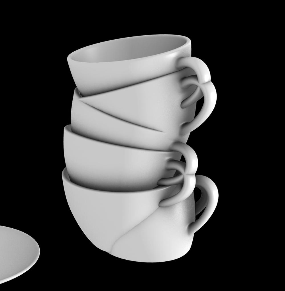 Each object is designed with the rule of using one twist per object: a shift in scale, a duplication, and a melting.
