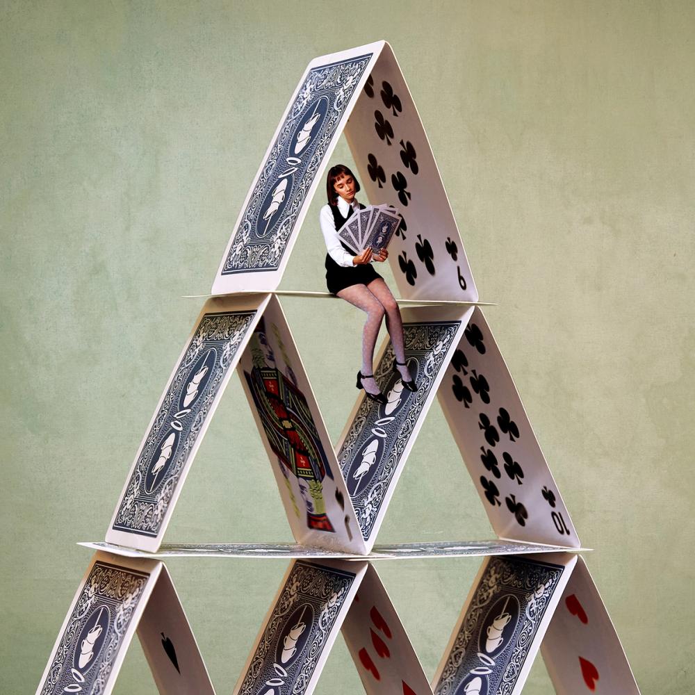 The Deck of Cards features skewed suits and faces, with a Tea for Two set back design.