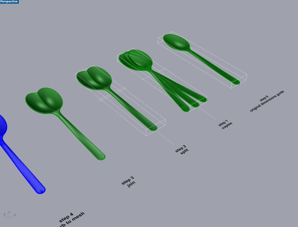 Each object is designed with the rule of using one twist per object: a shift in scale, a duplication, and a melting.
