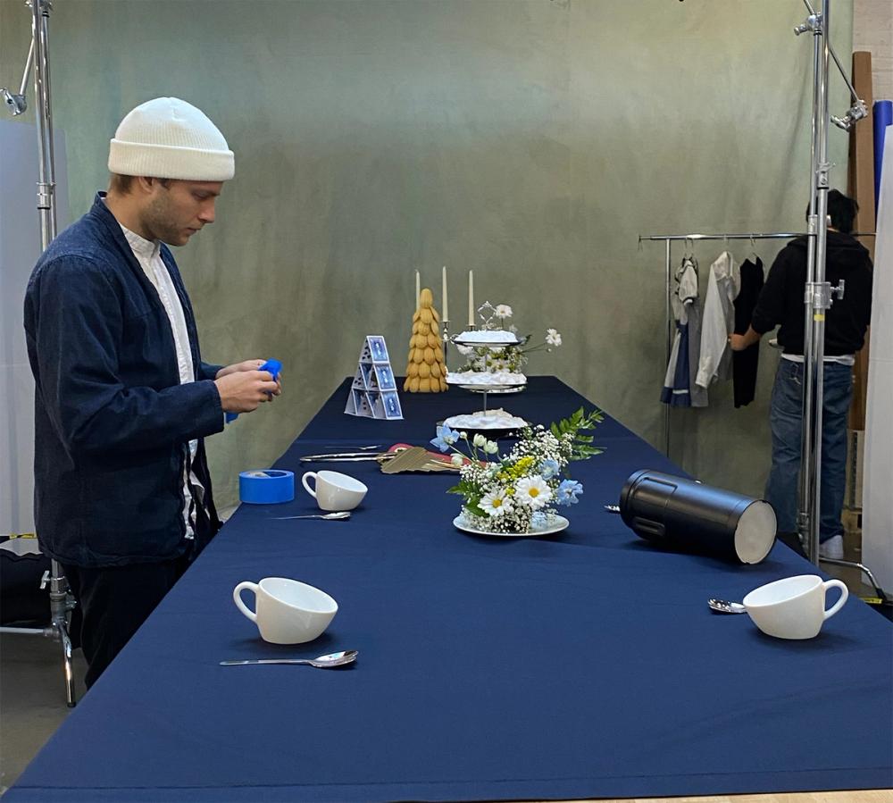 As a surrealist object collection, we set the stage for a world-build of the same kind. What would it look like to create our own Mad Hatter tea party, where everything is just a little bit off? (The pot has two spouts, the tea cups are just slanted enough to not spill, and the teaspoons have mutated into two).