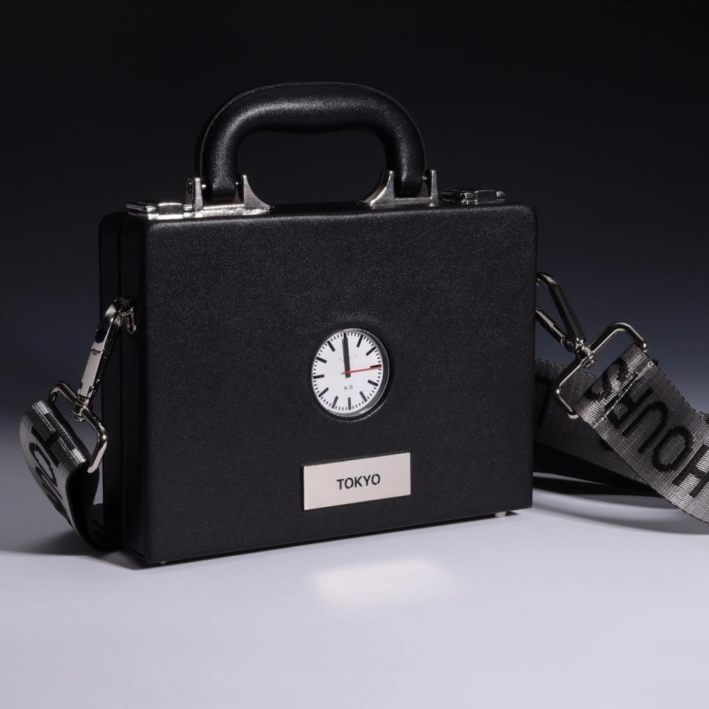 A time-forward bag with wearable watch, created for the trio of time by Anicorn.