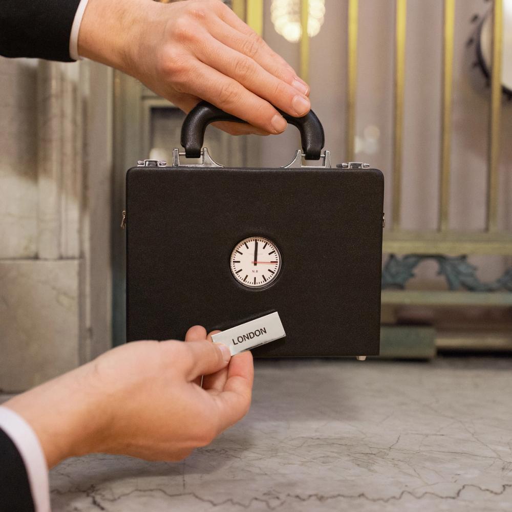 The Time Traveler Watch design came about from thinking through how global time has been perceived over the years through wall clocks, specifically the classic time zone wall clock.